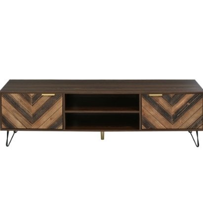 - Ein weiteres Highlight sind die robusten Eisenfüße, die dem Lowboard Stabilität und einen modernen Akzent verleihen. Non si presenta solo per una sichere Platzierung des Möbelstücks, sondern setzen auch einen stilvollen Contrast zu den Holzelementen.